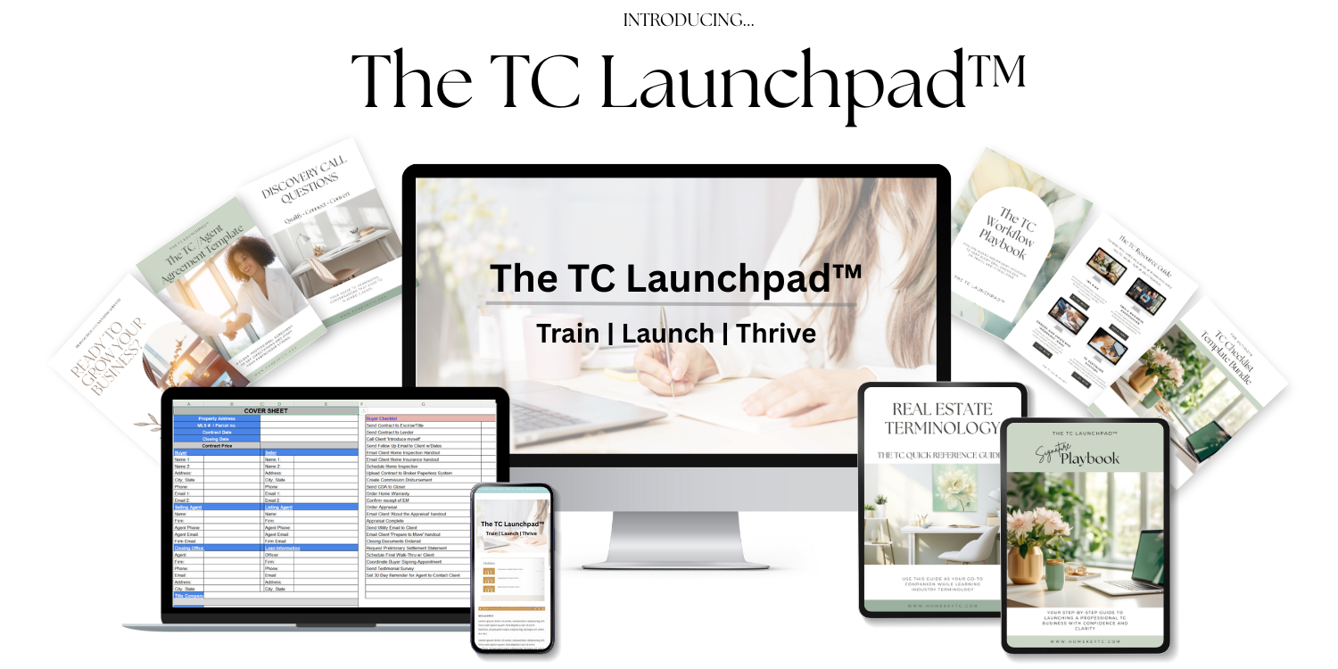 This is your start-to-finish roadmap for launching a professional Transaction Coordinator business with structure, confidence, and long-term growth built in.